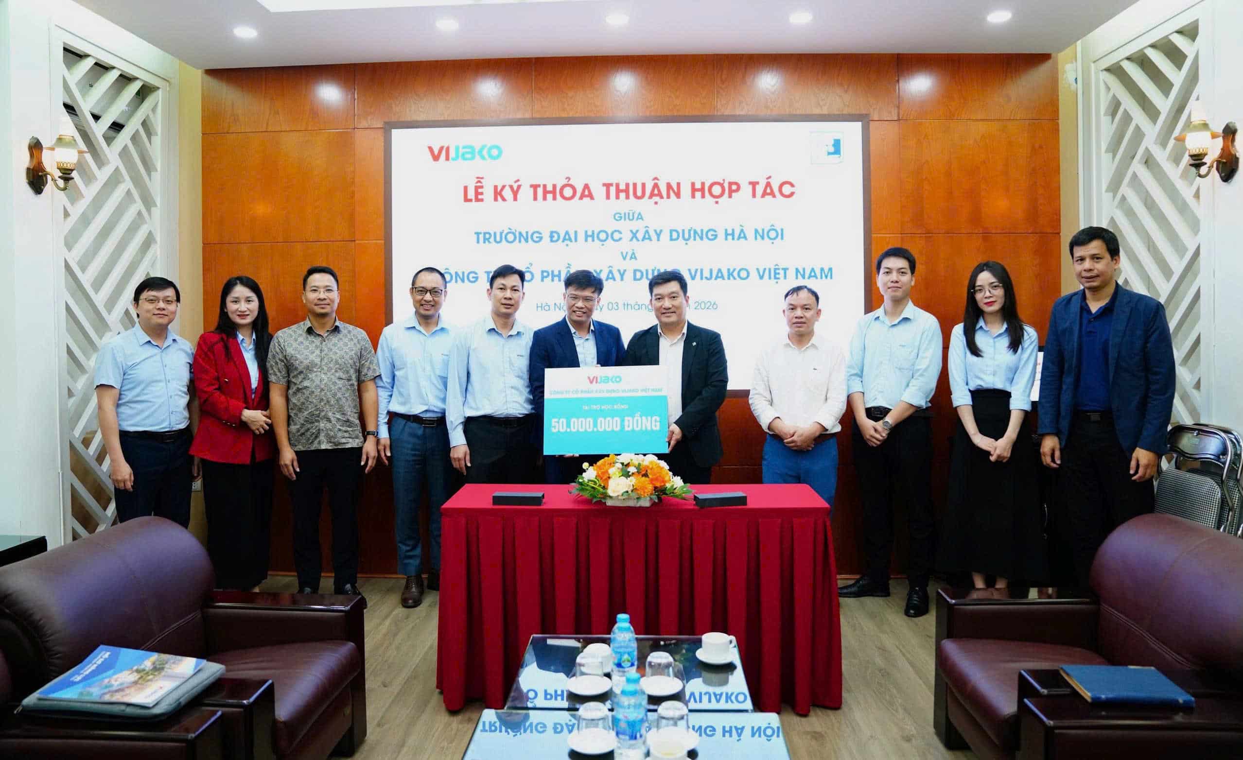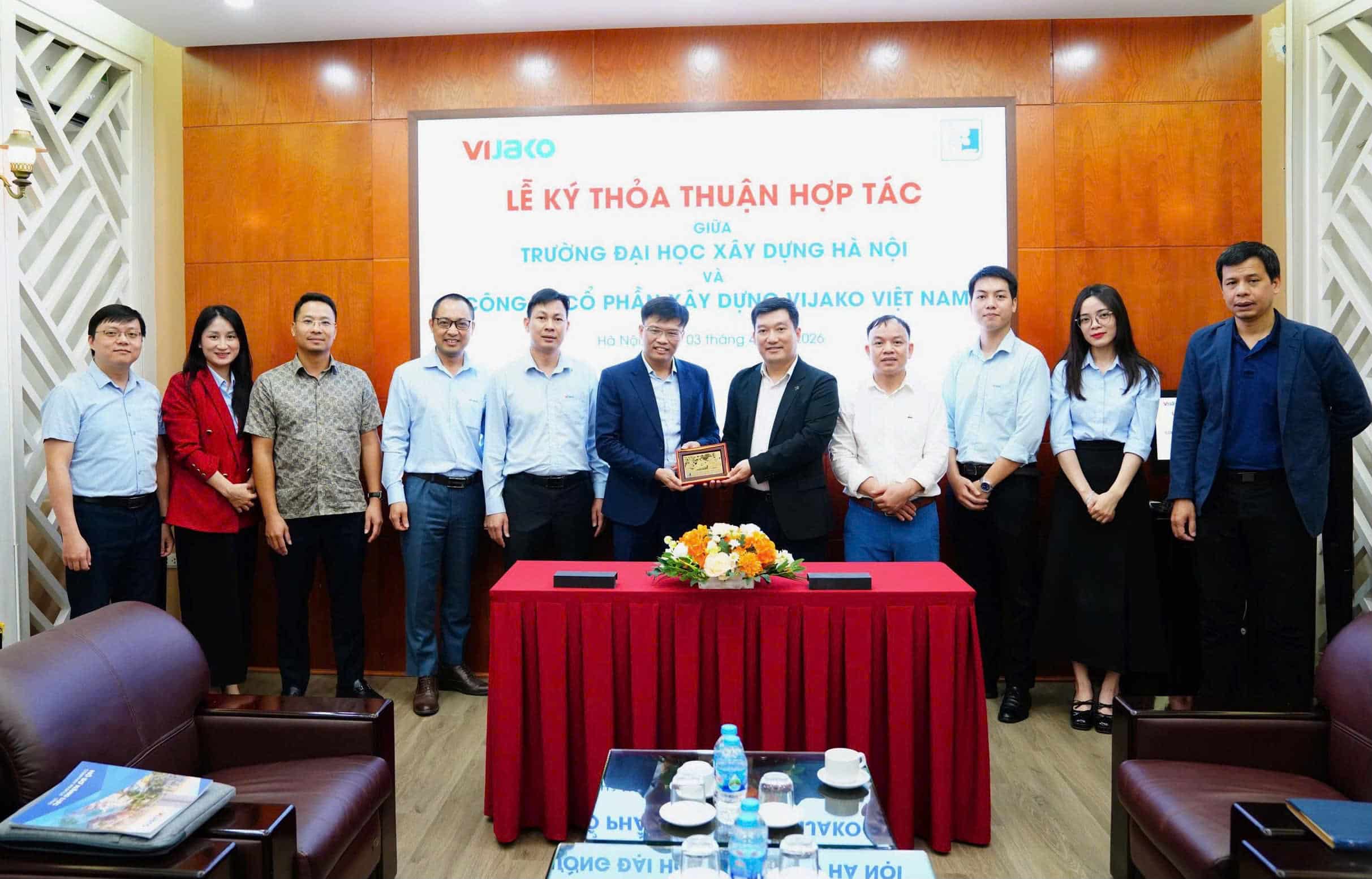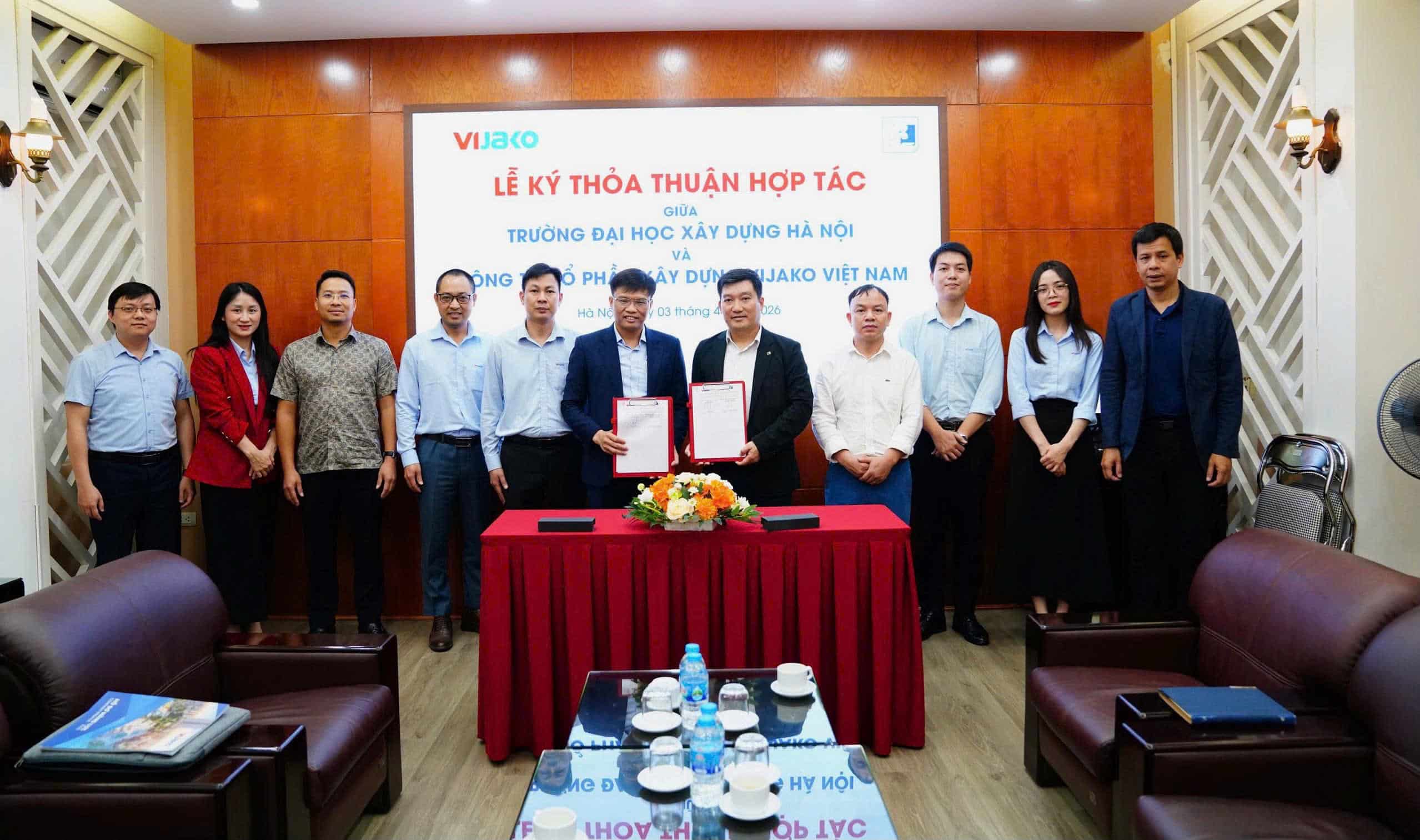 2026年4月3日,越南VIJAKO建设股份公司(VIJAKO)与河内建设大学(HUCE)正式举行战略合作协议(MOU)签约仪式。此次活动标志着企业与高等院校协同联动迈出了重要一步,旨在共同培养高质量建筑行业人才,满足VIJAKO下一阶段发展的人才需求。